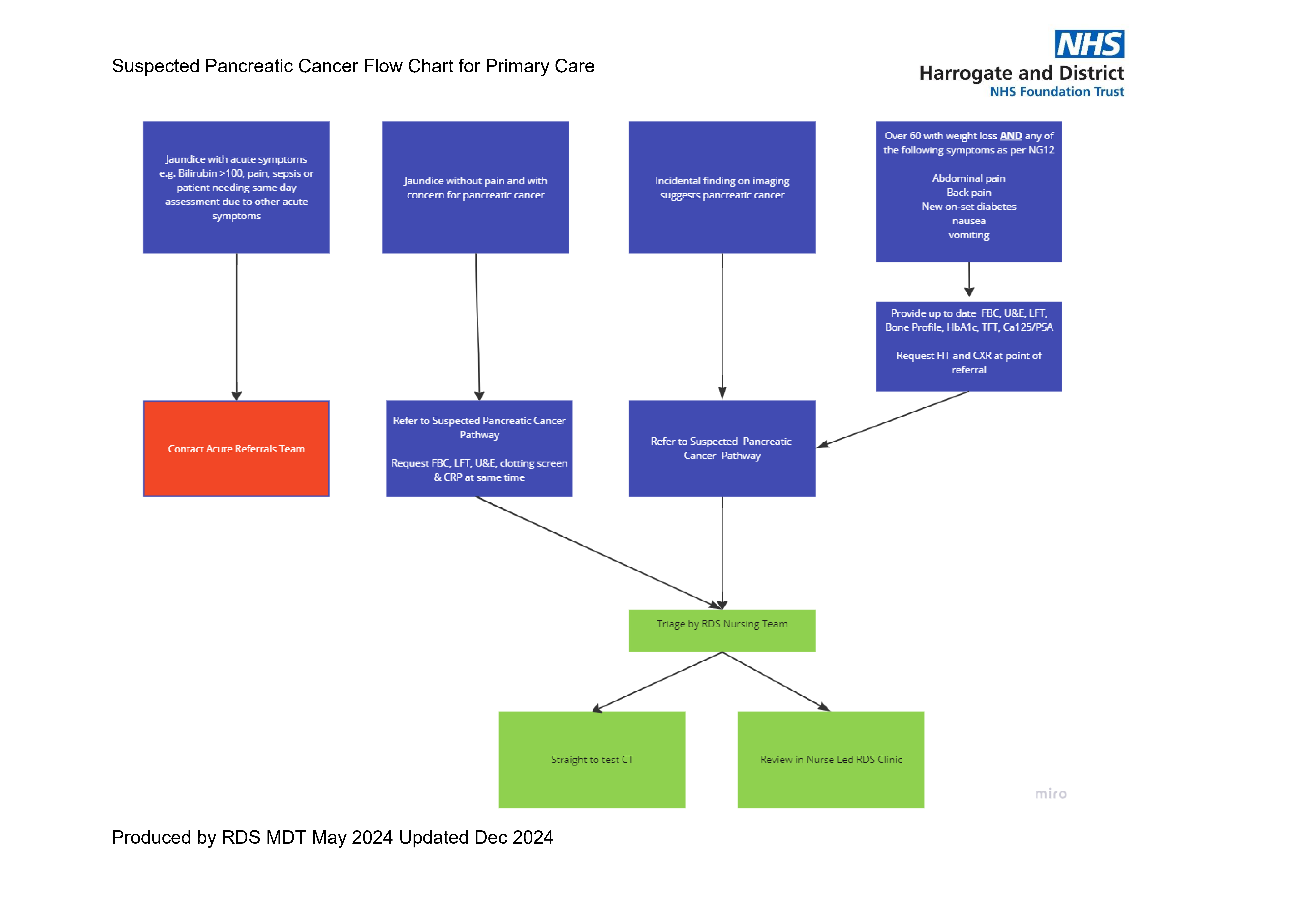 Referrals will be triaged by RDS Nursing Team (either will be sent straight to test CT or sent for review in nurse led RDS clinic)
