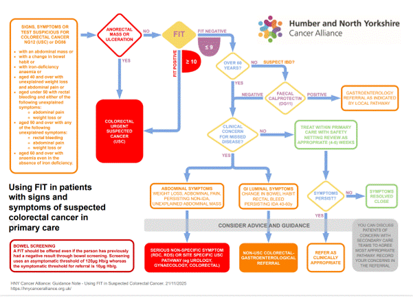 - Individuals who have undergone colonic investigations in the last 2 years – refer routinely