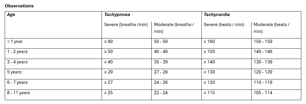 History of severe pneumonia (inpatient stay requiring oxygen, paediatric intensive care admission, complications of CAP (such as lung abscess, effusion, empyema)