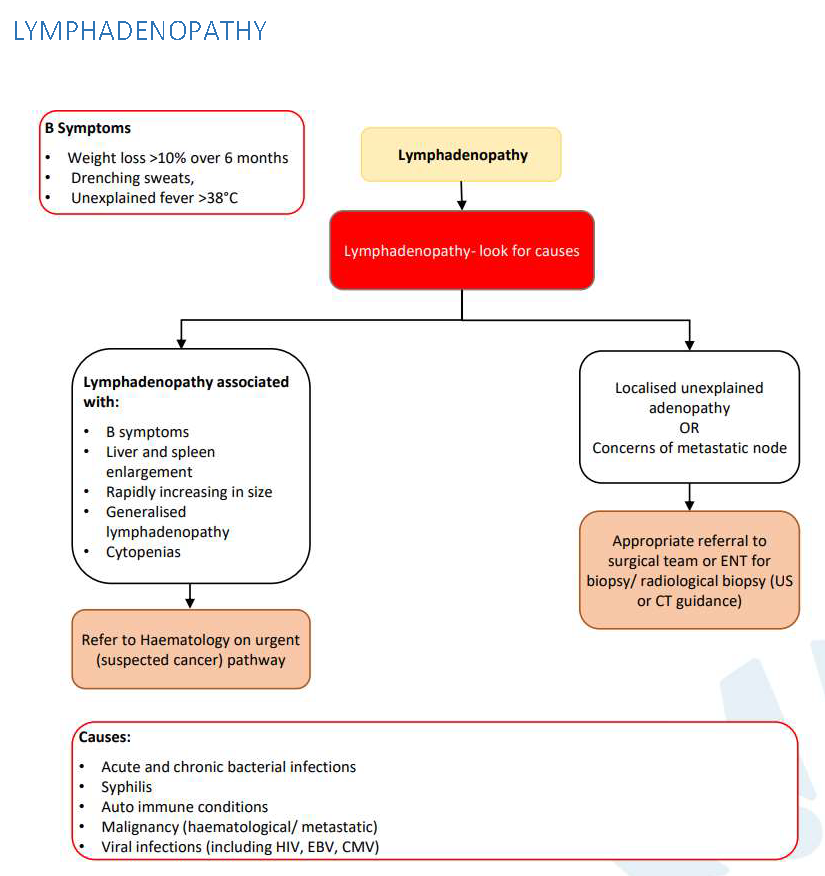 Refer to Haematology as urgent (suspected cancer pathway) if has lympadenopathy associated with: