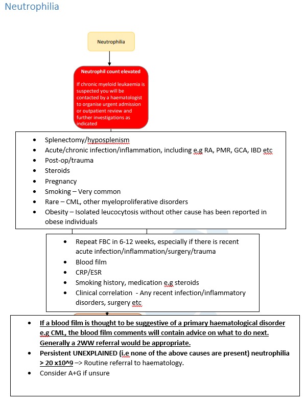 - Repeat FBC in 6-12 weeks, especially if there is recent acute infection / inflammation / surgery / trauma