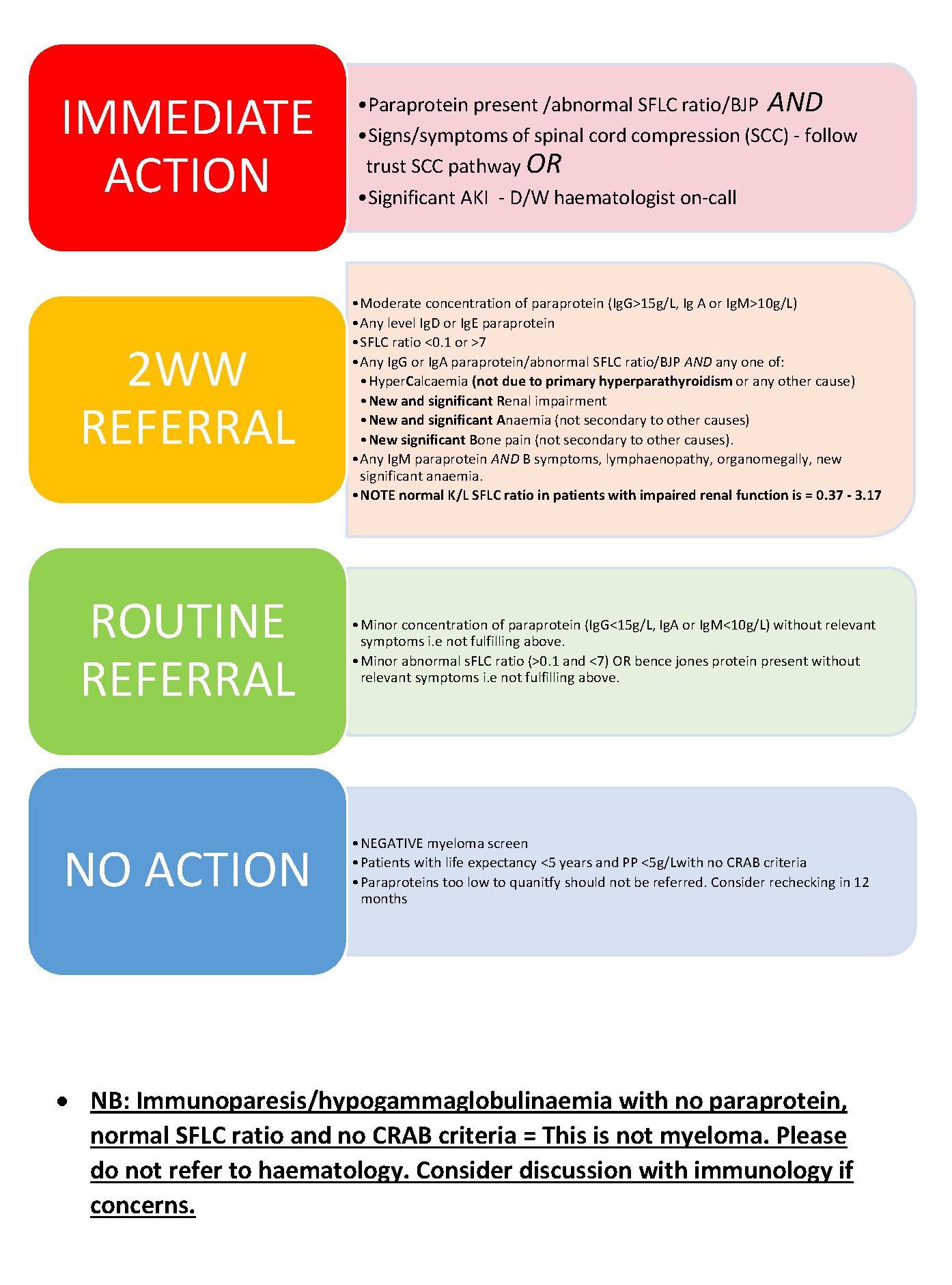 - Paraproteins too low to quantify should not be referred. Consider rechecking in 12 months.